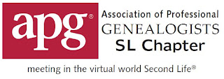 If getting to your local Association of Professional Genealogists (APG) Chapter meetings is cumbersome due to time and travel constraints, consider attending a "virtual" chapter that meets once a month in Second Life.