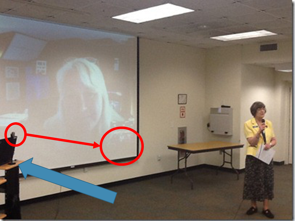 | IMAGE: The computer set up including the webcam pointed to the audience, so the speaker can view them. For more info see: Why Host Virtual Presentations? |